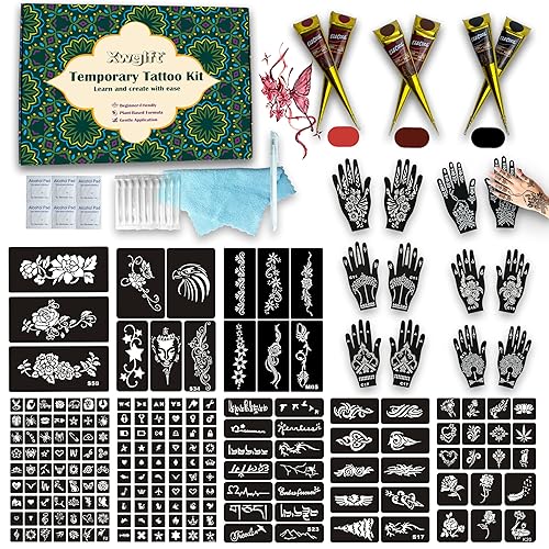 Complete Tattoo Kit with All Accessories: Our temporary tattoo kit is a complete set for beginners and pros, containing 10 tattoo stencil sheets with 99 unique designs, 3 tattoo ink cones (Black, Brown, and Dark Red), a tattoo outline pen, cotton swabs, and alcohol pads. Everything you need to start creating is in one box.