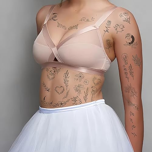 Temporary Tattoos Flower Heart Moon 3 Sheets Large Temporary Tattoo for Men Women Adults Waterproof Friction Resistant Low Reflective Lasts 5-7 day