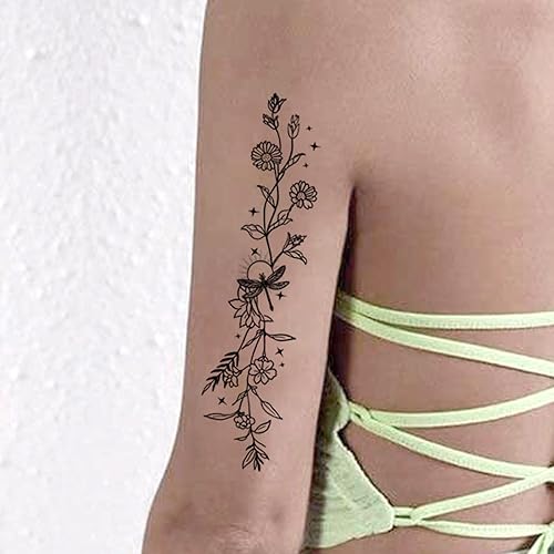 Temporary Tattoos For Women Girls -10 Sheets Branch Flower Butterfly Leaf Wild Plants Sketch Realistic Black Long-lasting Waterproof Tattoo Stickers for Arm Collarbone Leg Backbone Body Art Q848(FT-Flower Butterfly Stripes Tattoo-Q780)