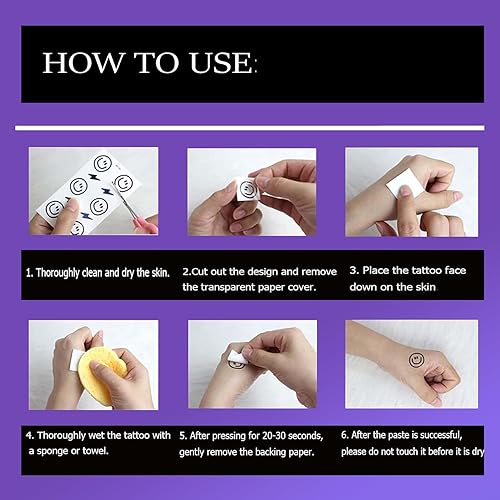 Simple to apply: clean and dry your skin, press the tattoo on, dab with a damp cloth, then gently peel off the backing. No mess, no fuss.
