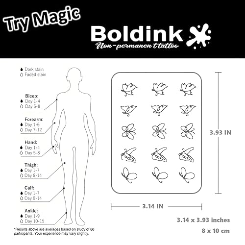 【Unique Product】Boldink temporary tattoos break the mold of traditional temporary tattoo stickers, distinguishing themselves from the simple fake tattoos of childhood. We specialize in creating waterproof, friction-resistant, and non-reflective tattoos that mimic the authenticity of real tattoos, providing consumers with a long-lasting experience of 7-14 days.