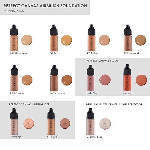TEMPTU Air Flawless Complexion Airbrush Kit: Cordless Pro Airbrush System Refillable Pro Makeup Cartridges Includes Primer, Blush, Highlighter & Perfect Canvas Foundation Set(Medium/Tan,Black Temptu Air)