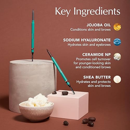 CONDITIONING FORMULA: Infused with shea butter, hyaluronic acid, and ceramides, this eyebrow pencil nourishes the skin and supports the look of healthier, fuller brows over time. These ingredients help maintain the appearance of softness and moisture in the brow area.