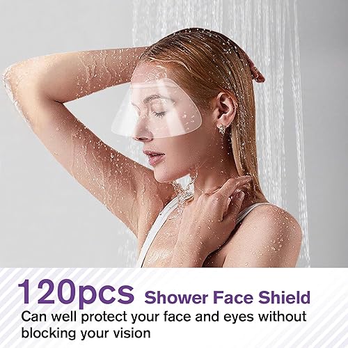 120 PCS Disposable Face Shields: Crafted from lightweight, transparent plastic, our shower visor for adults features a medically tested adhesive strip that adheres gently to the skin. Enjoy clear visibility for reading, scrolling, or relaxing during salon treatments or post-procedure care.