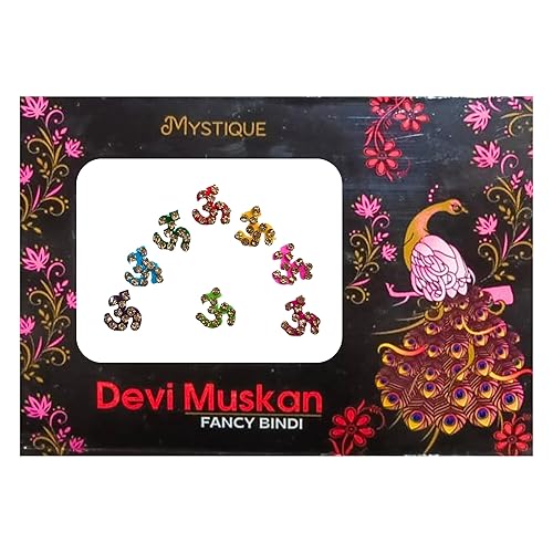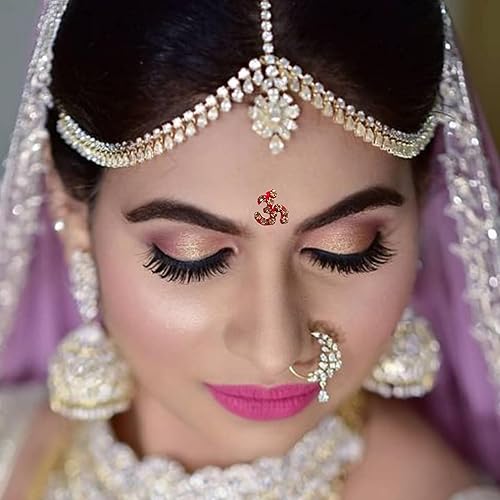 Spiritual Symbol Design: Features beautifully crafted Om-shaped bindis embellished with sparkling stones, representing peace, spirituality, and traditional charm.