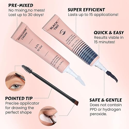 Easy To Apply, Quick Results: Designed for beginners and professionals alike! This gentle formula glides on smoothly and works in minutes, especially for light-colored lashes or brown brows. Includes precision tools for even coverage every time. (Tip: Keep your eyes closed during application)