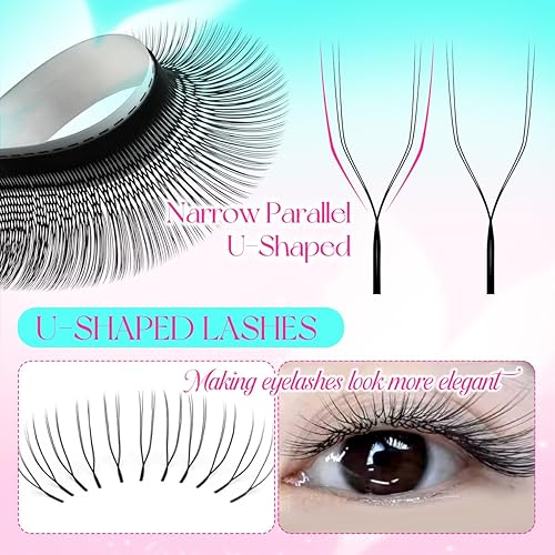 2D UU Lash Design:Each U-shaped cluster bonds 4 lash extensions. Featuring flat roots and parallel tips, these UU lashes let you quickly form perfect fans with tweezers—ideal for beginners