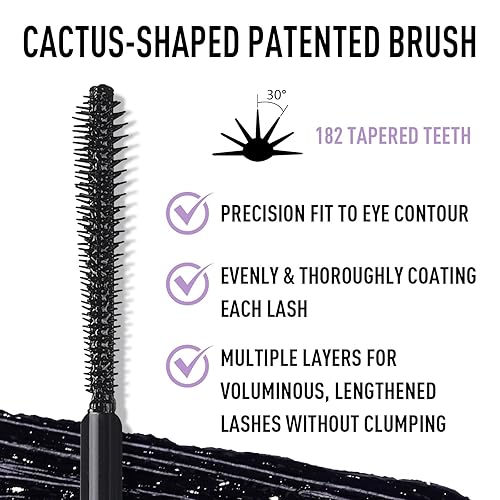 【Innovative Cactus Brush Design】Featuring a patented cactus-inspired brush with short bristles for intense application and long bristles for precise separation. Ensures every lash is coated from root to tip.
