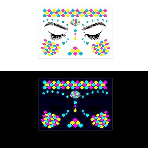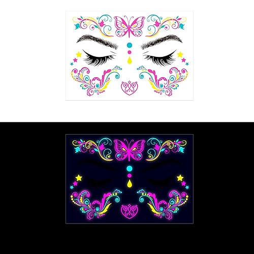 UV Stickers & Face Stickers for Women - Glow in The Dark Makeup Kit with Face Glitter | Blacklight Reactive Festival Accessories, Waterproof Neon Tattoos for Rave Party (10.5 * 15CM),001a-008h,5ps(014n)
