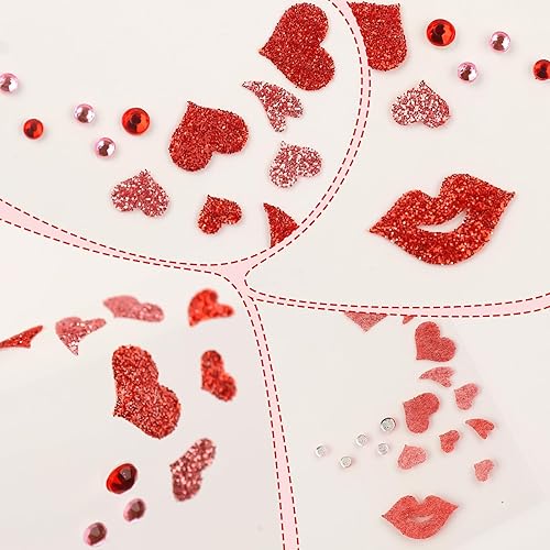 【Delicate Design】These Valentines heart face jewels decorated with classic Valentine romantic elements of heart and red lip representing love and passion, with the sparkling sequins and rhinestone embellishment, adding a touch of beauty and glamour, will suit your aesthetic and highlight your Valentines costume to make you become the center of the crowd party.