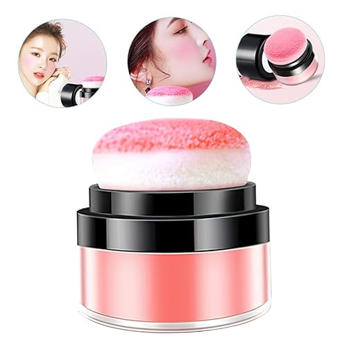 VALICLUD Loose Powder Blush with Mushroom Head Puff Oil Control Cheek Makeup for Women Portable Rosy Face Enhancer Buildable Color for Skin Tone