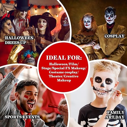 【Applicable for Many Occasions】Our white black and red paint kit suitable for Halloween parties face body makeup, clown, goths, vampires, makeup, fancy dress parties or show special effects, everyday pranks, etc. Help you create bloody scenes