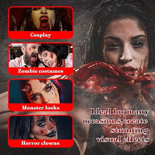 【Versatile Applications】Fake Blood set is great for creating frightfully realistic special effects for all Halloween, haunted houses, carnivals, fiesta and theater! Perfect for the budding effects enthusiast, horror film junkie, and halloween costume killers creating zombie, vampire monsters and other Gory Scene makeup