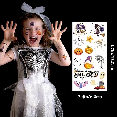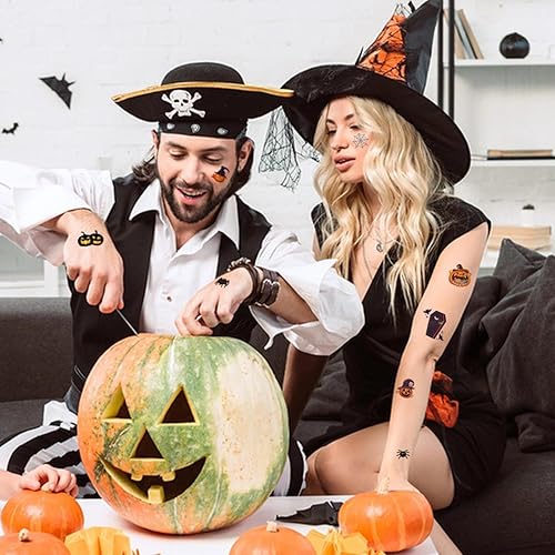 Halloween Temporary Tattoos:3 pairs Halloween face tattoos offer a blend of 3 different right and left face designs, 8 small halloween tattoos(pumpkin,witch,ghost,bat,spider and spider web),these novelty and creative tattoos allow you to experiment with your look each day, making every day of the celebration different from the last