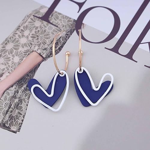 Vintage Blue Heart Earrings Enamel Heart Drop Earrings Acrylic Love Heart Earrings C Shape Hoop Earrings Gold Open Circle Earrings Jewelry for Women