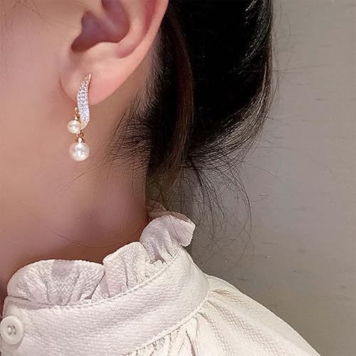 Vintage Crystal Pearl Drop Earrings Sparkly Leaf Earrings Rhinestone Pearl Dangle Earrings Gold Cz Spiral Leaf Earring Jewelry for Women