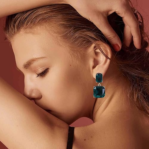 Vintage Emerald Square Earrings Green Emerald Drop Earrings Geometric Emerald Earrings Luxury Wedding Green Crystal Stud Earrings Jewelry for Women