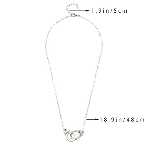 Vintage Handcuff Necklace Long Engraved Necklace Chain Pendant Necklaces Jewelry for Women and Girls (Silver)(Silver)