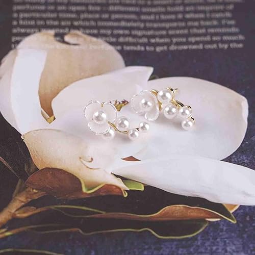 Vintage Pearl Flower Earrings Gold Pearl Dangle Earrings White Flower Stud Earrings Pearl Wedding Drop Earrings Jewelry for Women