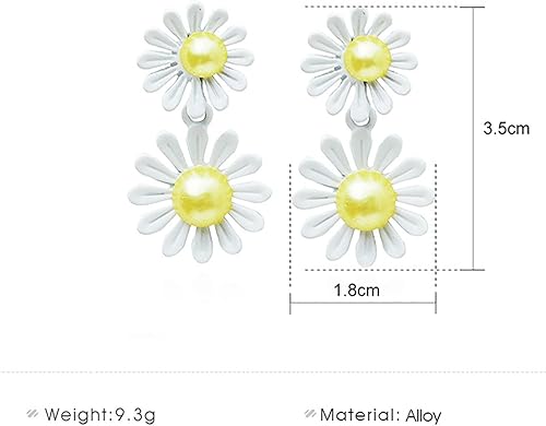 Daisy flower drop earrings.Item Details:Handmade Item.Size:As Shown.Color:White.Materials:Quality Alloy/Flower.Location:Ear.Style:Boho/Vintage.