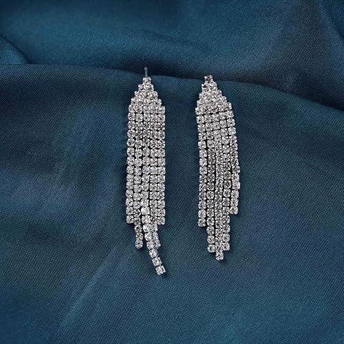Vintage Rhinestone Chandelier Tassel Earrings Crystal Chain Drop Earrings Gold Long Tennis Chain Earrings Shine Chandelier Bridal Earrings Jewelry for Women(Silver)