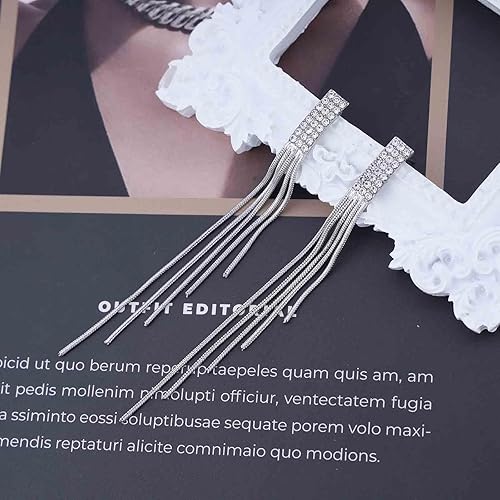 Vintage Rhinestone Dangle Earrings Gold Sleek Chain Drop Earrings Crystal Long Chain Tassel Earrings Sleek Metal Chain Earrings Jewelry for Women(Silver)