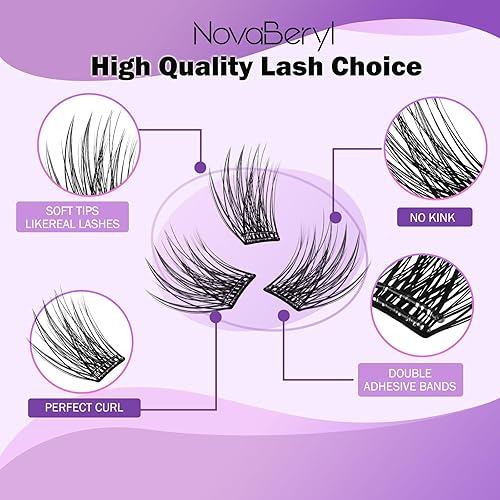 No Glue Needed – Double Adhesive Strips: NovaBeryl lash clusters feature built-in double adhesive strips with strong hold, allowing you to apply and remove them in seconds without extra glue or remover. Mess-free, beginner-friendly, and gentle on your natural lashes.