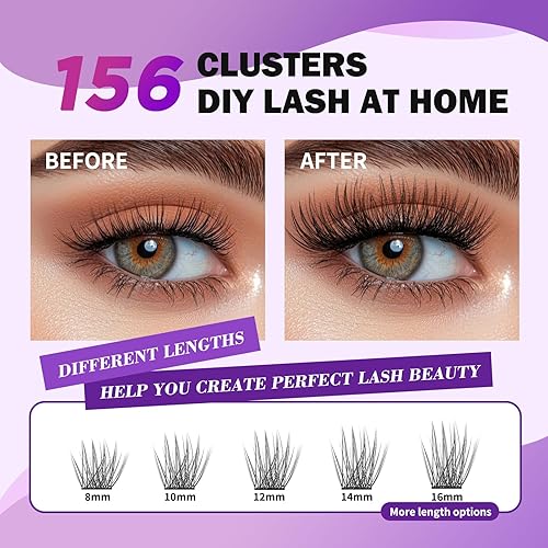 Value in Every Box: Each pack includes 156 self-adhesive lash clusters (5 lengths mixed-8mm, 10mm, 12mm, 14mm, 16mm), offering multiple applications at a cost-effective price. Designed for both beginners and lash lovers, NovaBeryl lashes bring salon beauty straight to your home.