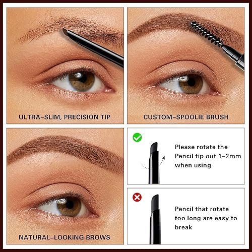 ULTRA-FINE MICRO TIP - 0.1mm Ultra fine self sharpening mechanical brow pencil draws on tiny brow hairs to fill in sparse areas or gaps and spoolie brush styles and defines brow shape. Ultra-thin core stays sharp for consistent precision.