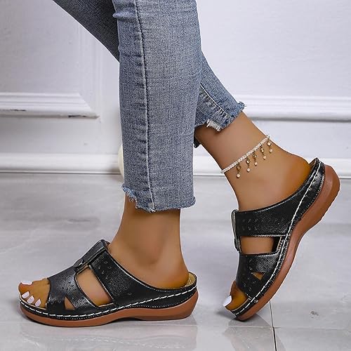★Fits Perfectly: Women's sandals. The arch support design allows the sandals to fit perfectly into the sole of the foot, allowing the sandals to provide excellent support while providing great traction, without having to worry about the slipper slipping off your foot. Sandals women dressy summer flat, orthopedic sandals for women.Gladiator sandals for women.