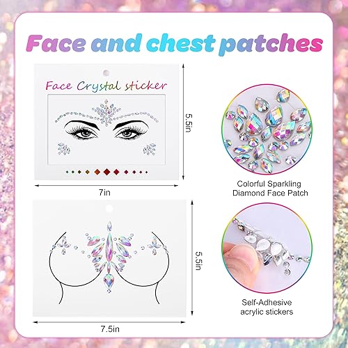 Package Includes: A set of 6 exquisite decorations 2 face stickers, 2 chest stickers, 2 glitter gels, meeting all your party styling needs! The dazzling shine will make you the center of attention, instantly elevating your charm