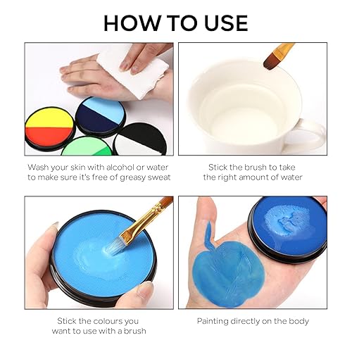 【Smudge-proof & Easy To Remove】The pigment is not easy to fade after drying and ensures that your face body paint will not be stained by sweat. And you only need to use soapy water or makeup remover to clean it.