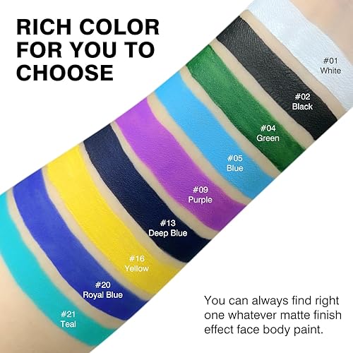 【Rich Color For You To Choose】Our Halloween face body paint available for 16 kinds of color choices for you. You can always find right one whatever matte finish or UV Glow effect face body paint.