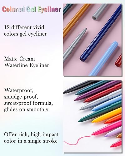 Multi-use & Easy to Remove - The colored eyeliner set not only can be used as eyeliner pencil, but also can be used as eyeshadow. You can create freely through gel eyeliner to meet all season’s makeup needs. Meanwhile, versatile design saves storage space of makeup for traveling. And the delineador de ojos is easy to remove by makeup remover, fast and clean, never worry about pigmentation.
