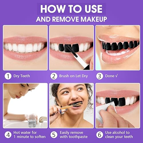 White Tooth Paint, Instant Teeth Whitening Paint | Quick Dry, Realistic & Safe, Long Lasting Vampire Bright White Teeth Paint for Halloween Makeup, SFX, Zombie, Cosplay, Theater, Stage Performance(Black)