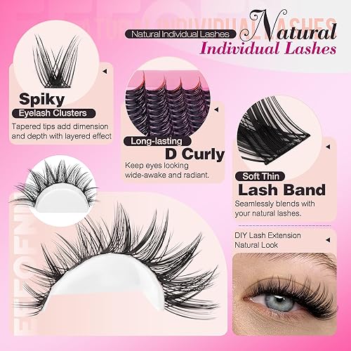 Natural Wispy & Fluffy Effect: Achieve a breathtaking, eye-opening look with our wispy lash clusters. The mix of 8mm to 16mm individual lashes creates a soft, graduated, and multidimensional effect that mimics natural, feathery lashes. Natural d curly eyelash clusters blend seamlessly with your natural lashes for a flawless, professional-looking lash extension effect.