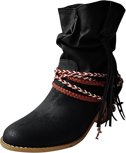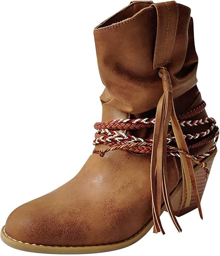 Comment on "Womens Vintage Fringed Mid Calf Boots - Chunky Heel Pointed Toe Strap Lace Up High Heel Slip-on Boots Winter Solid Comfy Casual Stacked Heel Shoes(Red,7)"