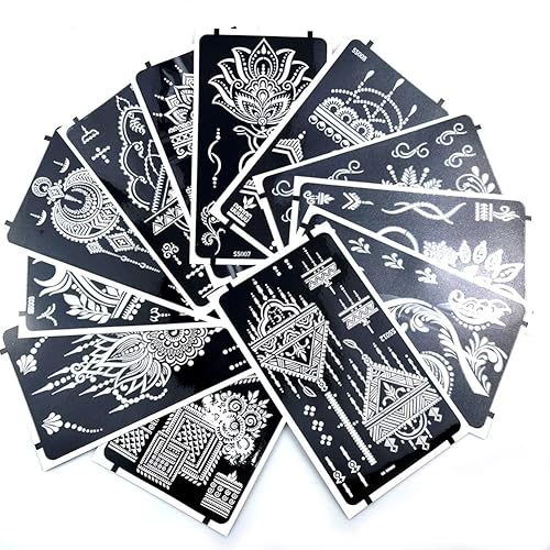 Pasting position: These tattoo stencils can be applied on hands, face, legs and other parts of body, Suitable for Henna body art, Airbrush Painting, Glitter tattoo,Juice tattoo and so on