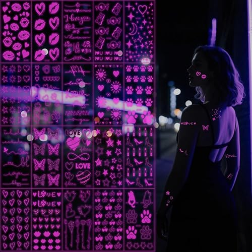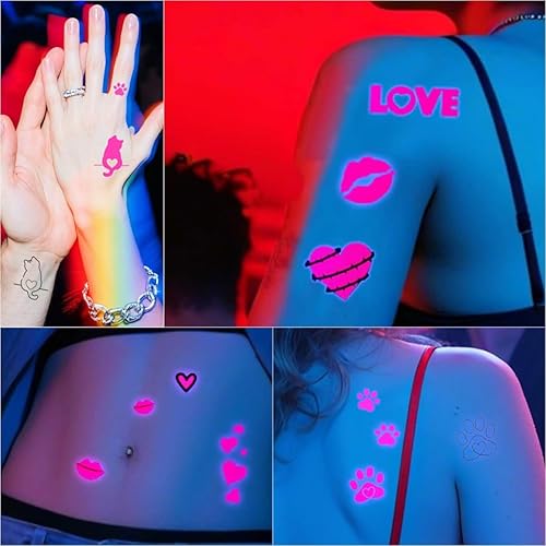 Waterproof: UV Neon tattoos temporary stickers are made of pvc, washable and Non-Toxic, durable and long-lasting. which is perfect for music parties, beach parties, carnivals, bars, swimming pools, clubs, Valentine's Day and Halloween etc