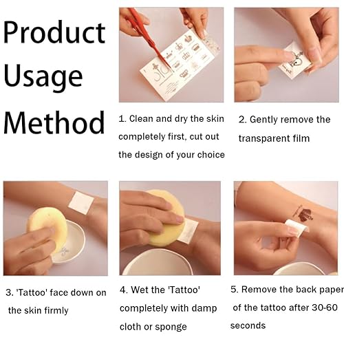 Easy to Use: Just need to pick one sheet fake tattoos you like, remove the transparent paper cover, and stick it on your skin face down, wet it with water, and gently press it for a few times. Transferred correctly can make the tattoo last longer