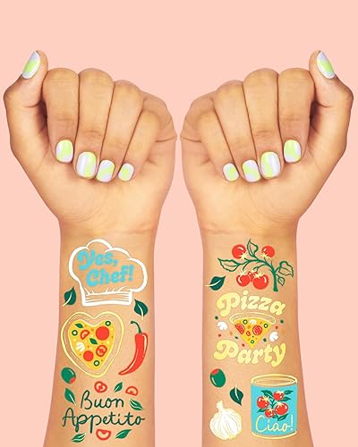 xo, Fetti Pizza Party Temporary Tattoos - 72 Gold Foil Pcs | Birthday Decorations, Cooking Class Accessory, Kids Party Favor, Cute Italian Activity