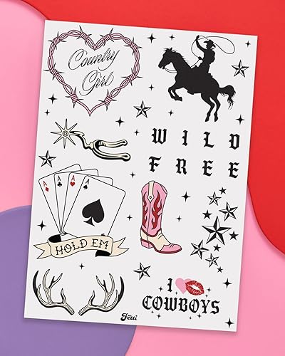 xo, Fetti Realistic Western Temporary Tattoos - 38 pcs | Rodeo Bachelorette, Birthday Favors, Cowgirl Party Accessory, Wild West Fake Tats