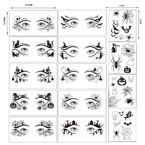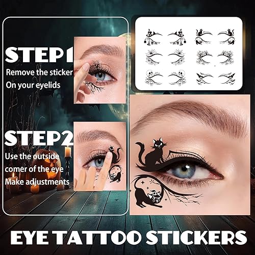 Long-Lasting Waterproof, Easy to Remove: These Halloween eye tattoo stickers are made of high-quality paper material, waterproof and durable, with a bright glossy finish and easy to apply. They are perfect for Halloween accessories, Halloween face paint, witch makeup, cosplay, costume parties, or rave party accessories. They can also be used as face stickers or Halloween makeup to create bold and stunning looks, and can be quickly removed with just warm water or makeup remover.