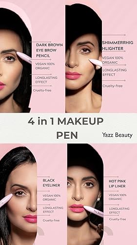 Comment on "YazzBeauty - 4 in 1 Makeup Touch Up Pen with Berry Lip Liner, Black Eyeliner, Medium Brown Eyebrow Pencil, and White Shimmer Highlighter, Compact Beauty Pen, Smudge Proof, Vegan, Cruelty-Free(Hot Pink)"
