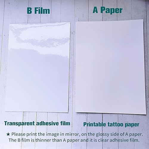 2 Sheets DIY Tattoo Paper Transfer Decal Paper for Inkjet & Laser Printers,includes 2 pieces white printing paper AND 2 pieces transparent adhesive film.Size: A4 (210 x 297 mm/8.3 by 11.7 inches) .