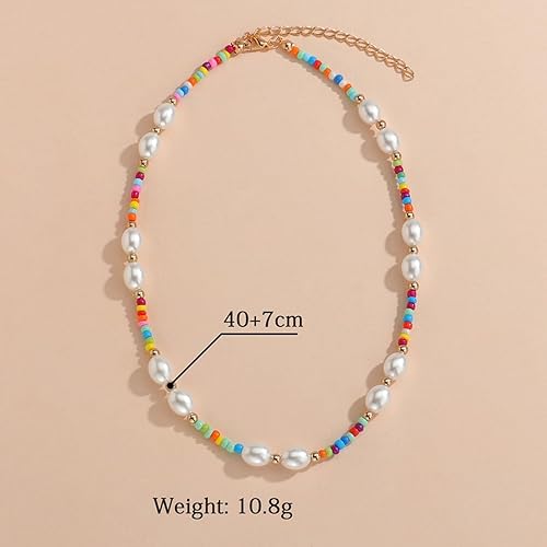 YienDoo Boho Pearl Choker Necklace Vintage Blue Heishi Surfer Choker Imitation Pearl Necklace Chain Vinyl Seed Beads Necklace Summer Beach Bohemian Necklace Jewelry for Women and Girls(style 2)