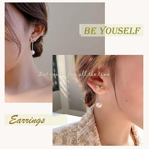 【Exquisite and Simple】Statement pearl earrings perfectly highlight the beauty of this earring jewelry with bowknot studs and pearl drop earrings.
