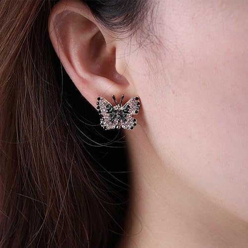 YienDoo Tiny Butterfly Earrings Studs Vintage Crystal Butterfly Earrings Punk Moth Studs Statement Sparkling Rhinestone Butterfly Studs Prom Butterfly Earrings Jewelry for Women
