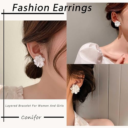 YienDoo Unique Large White Flower Earrings Studs Vintage Acrylic Floral Petal Earrings Statement French Camellia Flower Earrings Studs Bridal Wedding Prom Earrings Jewelry for Women