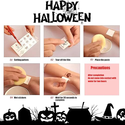 Instant Zombie Transformation:Apply in seconds: Press on clean skin, wet the back, peel – done! These zombie tattoos for Halloween create bloody gashes and surgical scars without makeup skills. Remove easily with oil/alcohol